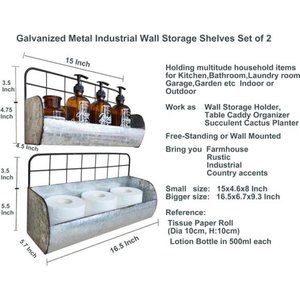 🧿Galvanized hanging wall shelves, metal bin hold a multitude farmhouse home decor from Bathroom,Kitchen,Laundry room. Hanging Tin shelves place hand towels, hold toilet paper or even a mason jar, multipurpose as farmhouse bathroom shelves. In kitchen,it works metal wall basket storage for spice bottle or its supplies. In living room store decorative piece for wall shelf. Industrial look with storage bins for herb/succulent planter, especially decorated fake flowers for farmhouse centerpiece decor