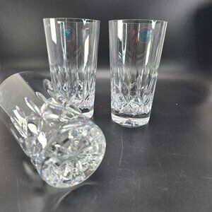 This set of high-quality Galway Irish Crystal glasses includes three elegant highball glasses and one whiskey glass. Crafted from 24% lead crystal, these Baldmore pattern pieces add sophistication to drinkware collections. Ideal for enhancing beverage presentation or as a timeless gift.
