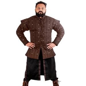 The MEDIEVALS provides a wide range custom size, colours, pattern, different cloths like woollen, cotton, Linen, Leather or all combined with different padding /cushion as par standard Proper Padded arming Gambeson/Aketon wish to wear under steel plate or chainmail Armor. When worn by itself it is comfortable to wear. The elbow pads are internal with a different ancient medieval time horn/bone/wood button, Fabric coveNavy Blue buttons This amazingly flexible and comfortable gambeson OR Aketon jacket Armor can be worn at theatre plays, as movie costumes and at various festivals as well. It can be used as a birthday or an anniversary gift for individuals interested in archery, Armor, etc.