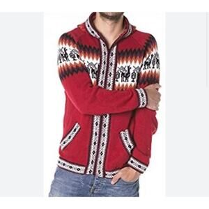 Elevate your winter wardrobe with this stunning Gamboa cardigan hooded sweater. Made of 100% Alpaca wool, this tight-knit sweater features a beautiful Fair Isle pattern in rich red hues, adding a pop of color to your outfit. The full zip and Aztec accents give it a unique, bohemian vibe, while the hood and pockets provide warmth and practicality. Perfect for travel or casual occasions, this classic fit sweater is a must-have for any fashion-forward woman's wardrobe. Hand wash only.