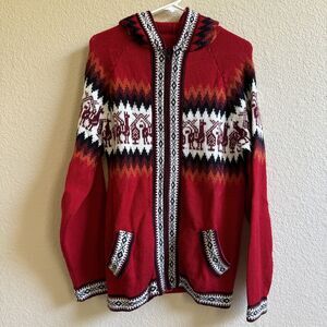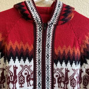 Gamboa 100% Alpaca Wool Zip Women’s S/M Cardigan Hooded Sweater Red Soft