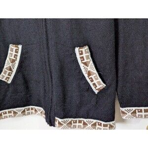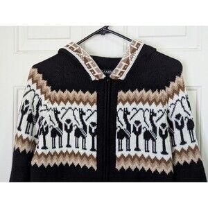 Gamboa Hoodie Sweater Alpaca Wool Womens Medium Black Tan Llama Andino Pocket