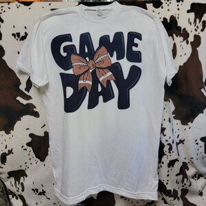 Game Day Bow Football Tee Graphic Short Sleeve T-Shirt