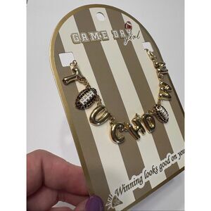 Game Day Girl Touch Down Lettered Football Theme Necklace Gold Tone. Gold tone letters, the O’s are footballs. Super cute! Have similar jewelry listed too. Perfect for football moms or fans! All items from smoke free, pet friendly home. Open to offers and bundle for a discount! Items cross posted.