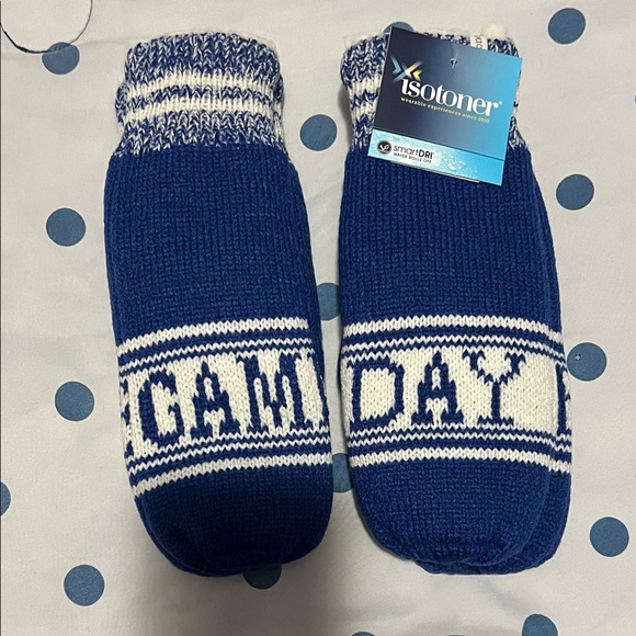 “Game Day” Isotoner Blue and White Knit Mittens