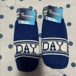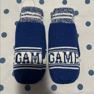 “Game” and “Day” written on each mitten. Warm knit mittens by Isotoner. Ideal for chilly weather.