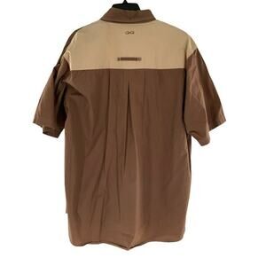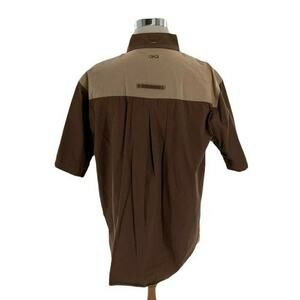 Game Guard Shirt Mens Large Brown Short Sleeves Patched Button Down Outdoor Hunting Top