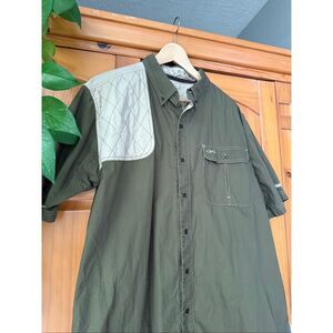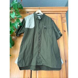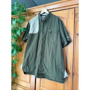 GameGuard Outdoors XL Hunting Shooting Shirt Olive Tan Quilted Shoulder Vented Back Schlumberger 100%cotton