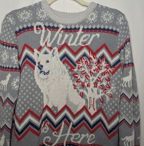Game Of Thrones Men's Gray Ghost Jon Snow Winter Is Here Ugly Sweater L