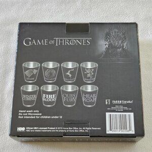 Game Of Thrones set of 4 shot glass set. Brand new in box, never opened. Houses: - Stark - Targaryen - Lannister - Baratheon