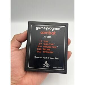 Dive into the classic arcade experience with the Game Program (Combat) CX-2601 for the Atari 2600, released in 1982. This iconic cartridge offers a variety of battle genres, including Tank, Tank Pong, Invisible Tank, Biplane, and Jet Fighter, providing endless hours of entertainment. Published by Atari, this game is a testament to the golden age of gaming.