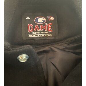Game Sportswear Varsity Jacket classic styling with customized "BMF $EASON TWO" raised embroidery on the mid-back. Shell body: 80% wool/20% nylon (faux leather). NEW with tag. Made in USA. Size: Medium. Measures: Chest: 20" * Armpit to armpit: 24" * Shoulder to shoulder: 20" * Sleeve: 24" Length: 26"