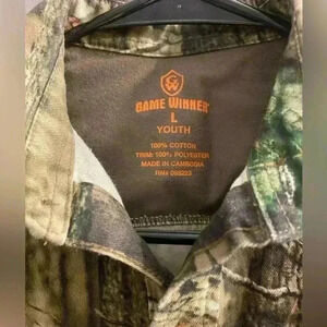Game Winner Camouflage Button down roll tab sleeve shirt 100% cotton two front chest pockets with buttons NWOT YOUTH LARGE SFPF HOME