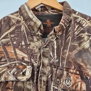 Game Winner Men's Camouflage Long Sleeve Button Down Shirt Brown Size 2XL