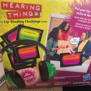 2 super fun games! Hearing things- The lip reading challenge game- comes with over 100 cards and game headphones. Opened but played maybe 2 times.
