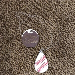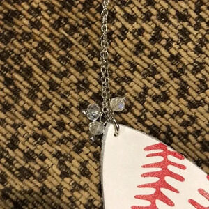 Game day baseball necklace red and white with small beads! Silver in color chain