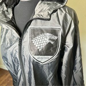 HBO licensed gray game of thrones windbreaker in XS. The attached hood adds an extra layer of protection against the elements, while its sporty style ensures you stay comfortable and stylish.