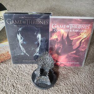 Game of Thrones seasons 1-7 DVD box set with bonus animated DVD and Iron Throne ornament.