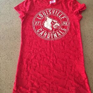 Go Cards Go! Listing is for both shirts. Ladies medium red tee with sheer leopard patterned burnout (see last pic). Boys large Adidas Climalite long sleeve in dark heather gray. Both are gently used and have been laundered. Red tee has very light pilling. Get Game Day ready!!