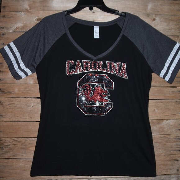 Gamecocks glitter & rhinestone bling short sleeved Vneck baseball or athletic style shirt!