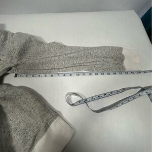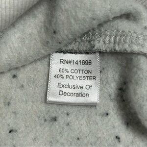 Stylish gray speckled sweatshirt featuring a convenient zipper pocket and a maroon logo.