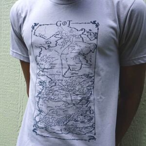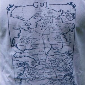 Size large with American Apparel cotton shirts. Any game of thrones fan will love this tee! In a slate gray color. No flaws and no trades.