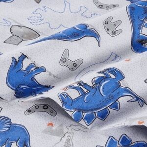 🆕 Gaming Dinosaur Sheets Twin Set in Velcro Storage Bag Blue White