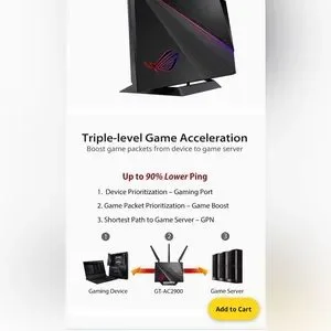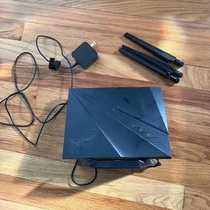 ASUS ROG wi-fi gaming router. Used but condition is like new. No damage, no missing pieces, no faulty equipment when it comes to how it works. Was purchased on Amazon so product photos include description and details!