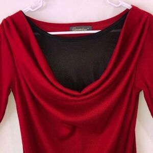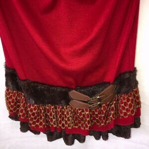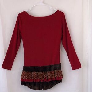 This pullover blouse is a size medium it’s red with long sleeves and attached belt is 100% cotton and machine washable Bin 2