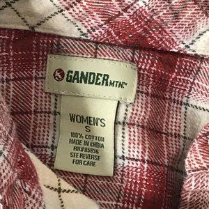 Gander Mountain Women's Small Red Cream Plaid Button Collared Long Sleeve Shirt