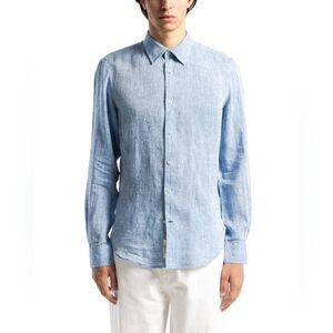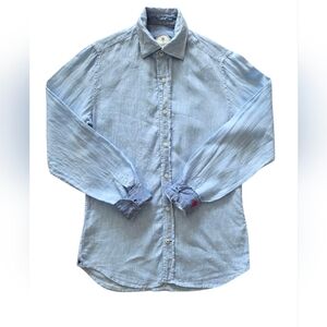 Ganesh 100% Linen Shirt Mens Small Blue Embroidered Long Sleeves Artisan Italy