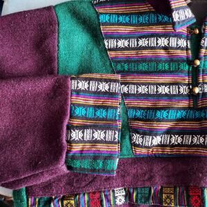 Ganesh Himal Wool Nepalese Colorful Geometric Trim Heavyweight Pullover Jacket