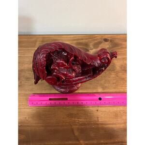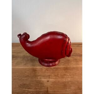 Ganesha in Conch Shell Statue – Red Resin Hindu Deity Figurine Spiritual Decor