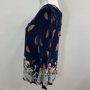 Ganji LA Small Top Navy Floral Print 3/4 Flare Sleeve Light Boho Office