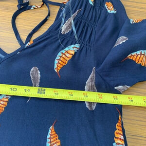 Ganji LA Small Top Navy Floral Print 3/4 Flare Sleeve Light Boho Office M21