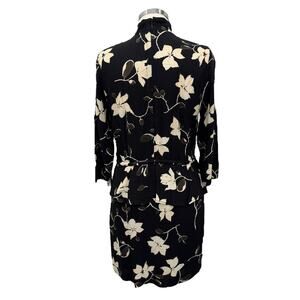 Ganni 1621 Rosemont Crepe Dress ¾” Sleeves Black Cream Floral Size 36 EU / 4 US