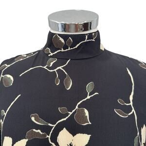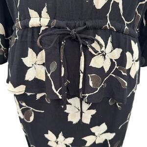 Ganni 1621 Rosemont Crepe Dress ¾” Sleeves Black Cream Floral Size 36 EU, 4 US