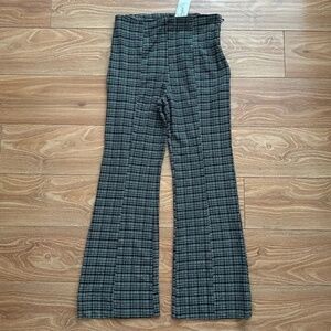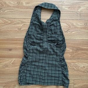 Ganni green/black plaid seersucker button-down halter top with coordinating cropped kick flare pants. Perfect condition.