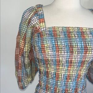 Gently worn puffed sleeve smock no stains no holes see pics. Tag is loose easily fixed