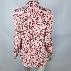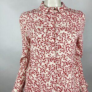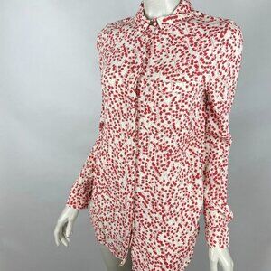 Ganni Ala Blouse Women 38 M Floral Lily of the Valley Crepe Long Sleeve Top Red