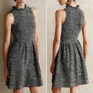 Ganni Anthropologie Pinnacle Tweed Knit Ruffle Mock Neck Fit and Flare Dress LP