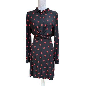 Ganni “Barra” Black with Red Polka Dots Crepe Mini Shirt Dress, Size 12