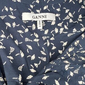 Ganni Barra Crepe Floral Hidden Button Front Longsleeve Shirt Women's Size 36