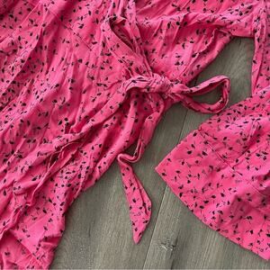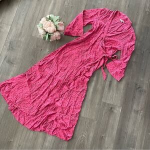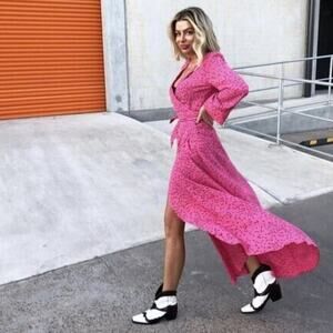 Ganni Barra Pink Floral Wrap Maxi Dress