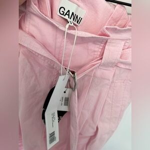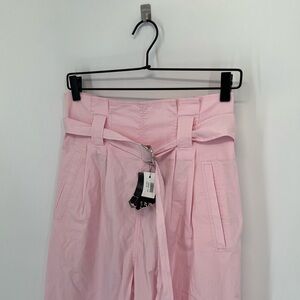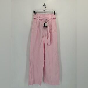 Ganni Belted Paper-bag Waist Wide Leg Ripstop Trousers In Cherry Blossom