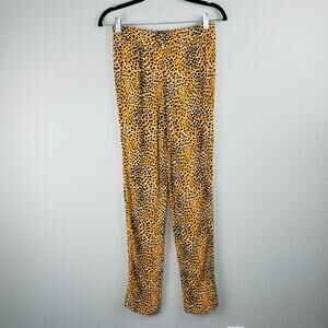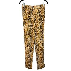 Ganni Black Orange Cheetah Spotted Elastic Waist Crepe Pull-On Trouser Pants XS