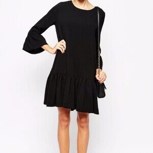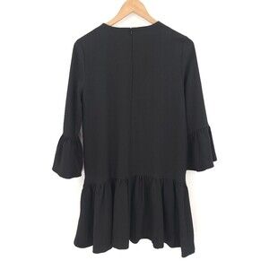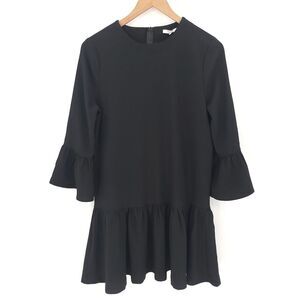 Ganni Black Peplum Ruffle Bell Sleeve Mini Dress Party Cocktail Holidays LBD