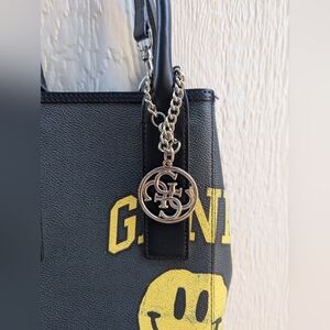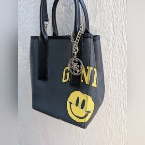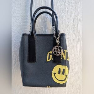 Ganni Black Smiley Face Print Leather Tote Bag Crossbody Shoulder Bucket Purse