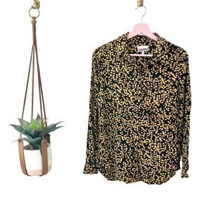 This is a gently used Ganni Black w/ Yellow Floral Print Button Front Blouse Sz 36. In very good condition. A few minor blue stains- see all pics for condition.