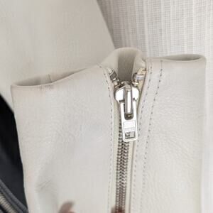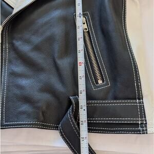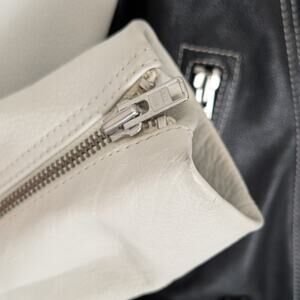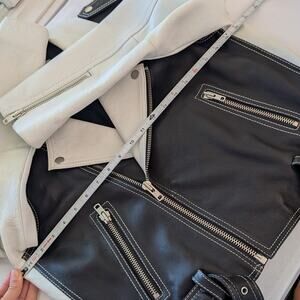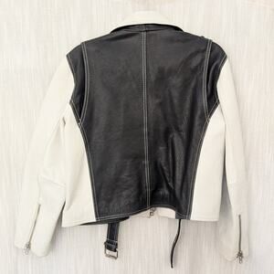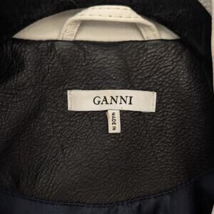 Ganni Black/White Heavy Leather Biker Full Zip Jacket, size EU40/US8-10
